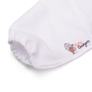 Zadbaliśmy także o to, by śliniak z rękawami Baby Doctor pozostał funkcjonalny, więc nadal można spokojnie karmić w nim dziecko i nie przejmować się plamami. Wykonano go z materiału odbijającego płyny, który zapewnia swobodę ruchu i łatwo się pierze. Śliniak ma też kieszonkę na okruszki zapinaną na rzepy. Posiada regulowane wziązanie z tyłu, a w jego rękawach znajdują się ściągacze, dzięki czemu przypadkowo nie wpadnie do nich żadne jedzenie.