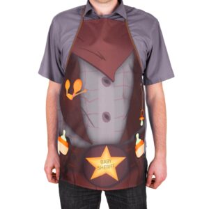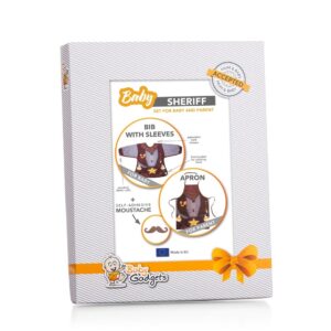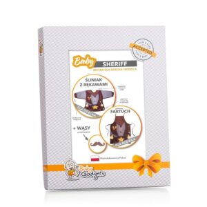 Baby Sheriff – śliniak i fartuch to akcesoria z motywem szeryfa, które w praktyczny sposób ułatwią karmienie i dodatkowo sprawią, że będziecie wyglądać po prostu świetnie. Nie zapomnijcie o zrobieniu sobie wspólnego zdjęcia, które bez wątpienia zrobi furorę wśród znajomych i rodziny, a także nada się idealnie do powieszenia na ścianie. Dwóch szeryfów w ramce będzie unikalną pamiątką na wiele lat – nawet wtedy, gdy mały szeryf już dawno urośnie i opuści rodzinną posiadłość.