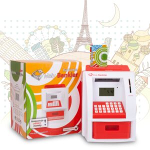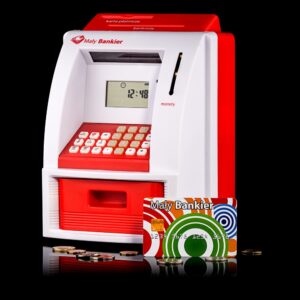 Bankomat Mały Bankier to dobry prezent na urodziny, Dzień Dziecka czy Boże Narodzenie zarówno dla chłopca, jak i dziewczynki. Każde dziecko lubi bawić się w naśladowanie dorosłych. Edukacyjna zabawka w postaci bankomatu wraz z kartą i numerem PIN na pewno im to ułatwi. A przy tym zapewni mnóstwo dobrej zabawy oraz pierwsze zaoszczędzone pieniądze.