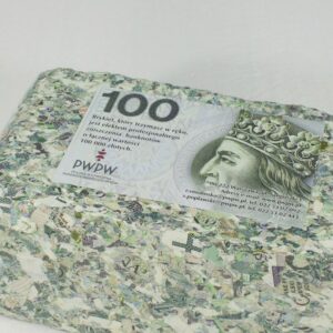 – Wymiary poszczególnych brykietów mogą się różnić- Waga: ok 900g- Banknoty zostały profesjonalnie zniszczone w Polskiej Wytwórni Papierów Wartościowych