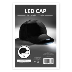 Awaryjne oświetlenie zawsze pod ręką:Czapka LED to czapka z daszkiem z wbudowanymi diodami LED. To awaryjne oświetlenie, które – w przeciwieństwie do innych latarek – masz zawsze ze sobą i aby ją włączyć, wystarczy nacisnąć ukryty przycisk. Gdy nie potrzebujesz oświetlenia, czapka wygląda jak klasyczna, czarna czapka z daszkiem, która pasuje do normalnego ubioru. Sprawdzi się w niektórych sytuacjach, w których chciałoby się użyć czołówki, kiedy – jak zwykle – nie masz jej pod ręką.