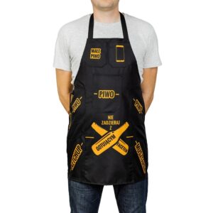 – Dedykacja: Tato, jest coś lepszego od zimnego piwa! Cztery zimne piwa- Uniwersalny rozmiar- Posiada 7 kieszeni: 3 na duże piwo, po jednej na małe piwo, telefon, ketchup i musztardę + otwieracz do butelek mocowany na sznurku- Duże kieszenie na piwo mieszczą butelki 0,5 l- Zapakowany w eleganckie czarne pudełko prezentowe- Wykonany z mocnej tkaniny- Nie przepuszcza płynu- Odporny na zabrudzenia- Łatwo się pierze i nie traci koloru- Materiał: 100% poliester- Produkt Polski