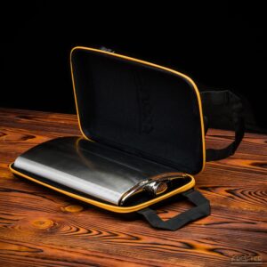 Teraz ten kultowy już gadżet przedstawiamy w nowej odsłonie! Gigantyczna Piersiówka Deluxe została wzbogacona o praktyczne, czarne etui, które ułatwia transport oraz świetnie chroni produkt przed zarysowaniami, jednocześnie dodając mu szyku i elegancji.