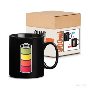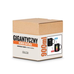 Gigantyczny kubek z nadrukiem zmieniającym się po zalaniu wrzątkiem.