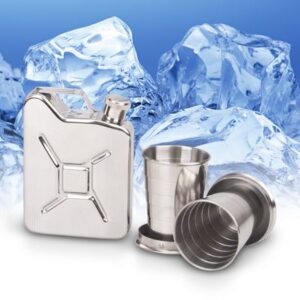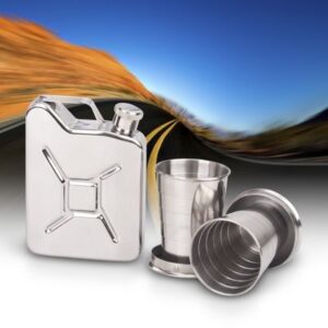 – w zestawie książka ze schowkiem, piersiówka w kształcie kanistra oraz dwa wysuwane kieliszki teleskopowe- kryjówka na ulubiony trunek- piersiówka jest sprzedawana bez napoju- pojemność piersiówki ok. 125ml, pojemność kieliszków ok. 50 ml każdy