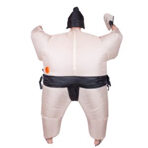 Dzięki naszemu kostiumowi zawodnika Sumo zostaniesz japońskim zapaśnikiem w mgnieniu oka, bez konieczności zmiany płci czy przestrzegania tuczącej diety. Wystarczy odczekać kilka sekund, aż ten prześmieszny kostium się napompuje, i już możesz stawać do walki – zarówno o zwycięstwo w pojedynku, jak i o tytuł króla karnawałowego balu!