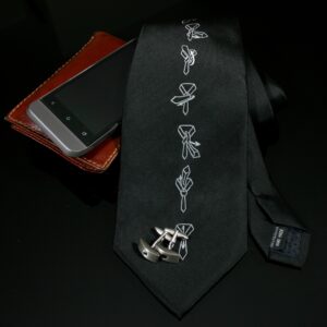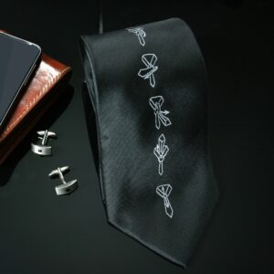 – wyjaśnia krok po kroku, jak wiązać krawat- posiada instrukcję, której nigdy nie zgubisz- zabawny dodatek dla mężczyzn z dystansem do siebie- materiał: 100% poliester