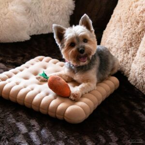 Choć widok śpiącego pupila sam w sobie jest już wystarczająco słodki, warto zadbać o to, by nasz zwierzak miał posłanie zawierające równie dużo cukru. 😉 Legowisko Gigantyczny Herbatnik to coś, co każdy słodki psiak mieć powinien – w końcu pieski kochają ciasteczka, więc z tym przerośniętym psim smakołykiem nie będzie inaczej.