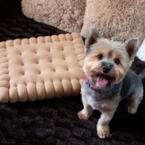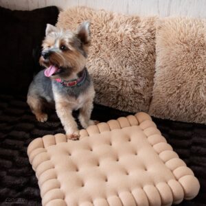 Legowisko Gigantyczny Herbatnik nadaje się dla mniejszych psów, np. yorka, mopsa, shih tzu, piesków chihuahua czy szczeniaków. Wykonane jest z przyjemnego w dotyku materiału, a do tego nie odkształca się w trakcie użytkowania. Ma jeszcze jedną zaletę – pięknie wygląda na zdjęciach! Dzięki temu ucieszy nie tylko psiaka, ale i jego właściciela, ciesząc oko każdego dnia.