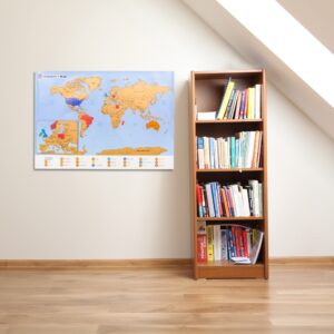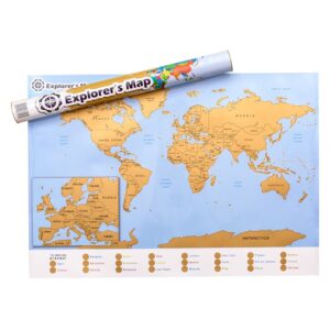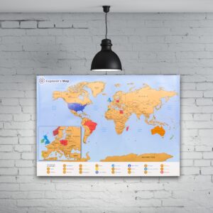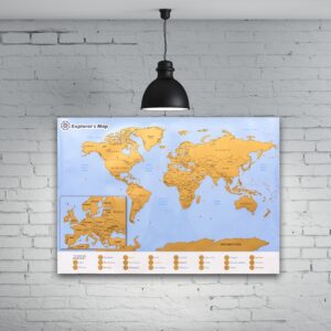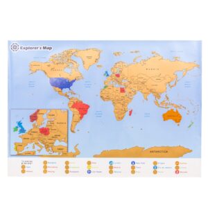 Mapa Odkrywcy to tak naprawdę wielka zdrapka w rozmiarze 864×606 mm, dzięki której w oryginalny sposób zaznaczysz miejsca, które udało Ci się zwiedzić. Wszyscy wiemy, że zdrapki – tak jak folie bąbelkowe – to najlepsza rozrywka na świecie!