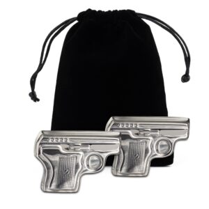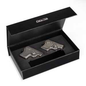 Tradycyjna kostka lodu już w czasach naszych dziadków była, no właśnie, tradycyjna. Dlatego warto zastąpić ją czymś co cieszy oko i przykuwa uwagę – np. pistoletem.Dzięki stalowej „kostce” w kształcie spluwy twoja whisky pozostanie przyjemnie chłodna, abyś mógł dłużej delektować się jej smakiem.Możesz również raczyć się whisky w towarzystwie kolegi lub brata, gdyż w pudełku znajdują się dwa gnaty – po jednym na głowę.Pamiętaj aby przed użyciem zmrozić je w zamrażarce.
