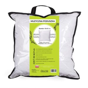 – głośność dźwięku jest łatwo sterowana ze źródła muzyki- dźwięki wydobywające się z głośnika są słyszalne tylko dla osoby przytulonej do poduszki- głośnik wewnątrz poduszki jest nieodczuwalny w trakcie snu- długość kabla: 100 cm- nie wymaga dodatkowego zasilania, czerpie energię z odtwarzacza- posiada wtyk 3,5 mm (mały jack – standardowa końcówka do wszystkich odtwarzaczy muzycznych)- tkanina: 100% mikrofibra- wypełnienie: włókno silikinowe- Produkt PolskiUWAGA: wkładka informacyjna występuje w dwóch wersjach językowych (PL i EN) dostosowanych do kraju wysyłki.
