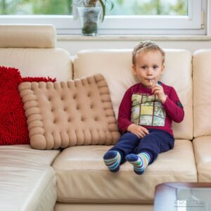 Może ciasteczko do herbaty? Poduszka Gigantyczny Herbatnik zawiera zero kalorii, a pomoże Ci odprężyć się po ciężkim dniu lepiej niż inne słodkości. Jest wygodna, zabawna i subtelnie dodaje uroku domowemu zakątkowi. Może służyć jako poduszka pod plecy, podkładka pod książkę, oryginalna dekoracja czy fantastyczny prezent!
