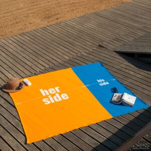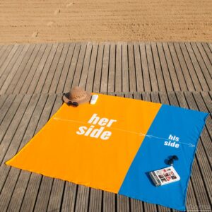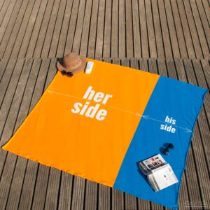 – Podział na 2 strefy: dla Niej i dla Niego- Świetnie sprawdzi się na plaży i pikniku- Materiał: frotte (100% poliester)- Praktyczne opakowanie z rączką, które ułatwia przechowywanie ręcznika- Wyprodukowano w Polsce