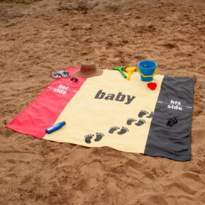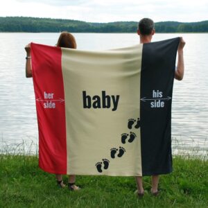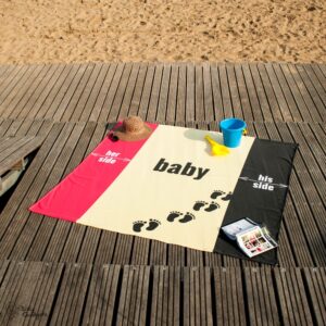 Ręcznik rodzinny – Her His Baby doskonale sprawdzi się na plaży, gdzie z pewnością wywoła uśmiech zrozumienia na twarzy niejednego rodzica. Produkt świetnie nadaje się na prezent dla rodziców posiadających już malucha, jak również z okazji narodzin dziecka.