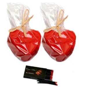– romantyczny zestaw dla dwojga- zawartość zestawu: 2 świece w kształcie serca, pudełko zapałek- estetyczne i romantyczne opakowanie