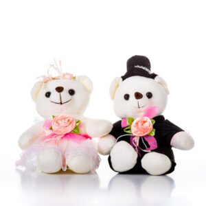 Zostałeś zaproszony na ślub i szukasz prezentu dla Młodej Pary? Właśnie go znalazłeś – proponujemy Ci parkę uroczych pluszowych misiów ubranych we frak i suknię ślubną. Możesz je z powodzeniem wręczyć nowożeńcom zamiast kwiatów, których i tak młoda para dostanie setki i które szybko zwiędną. Weselne misie będą natomiast wspaniałą pamiątką na wiele lat!