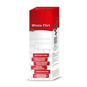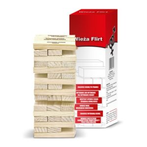 Na pewno znasz popularną grę Wieża, w której główną rolę grają drewniane klocki. Wieża Flirt to jej nowa odsłona. Tak jak w klasycznej wersji chodzi tu przede wszystkim o wyciąganie drewnianych klocków tak, aby wznoszona konstrukcja się nie zawaliła.