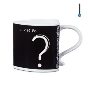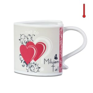 – kubeczek, który pomoże Ci wyrazić swoje uczucia- dzięki specjalnej farbie zmienia się pod wpływem ciepła, odkrywając napis „Kocham Cię!”- po wystygnięciu lub zalaniu zimną wodą wraca do stanu początkowego- Zaskakujący Kubeczek jest chroniony zarejestrowanym znakiem towarowym