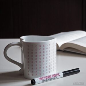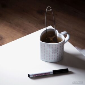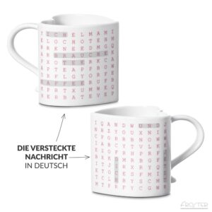 Kubek w kształcie serca z wiadomością do odnalezienia.