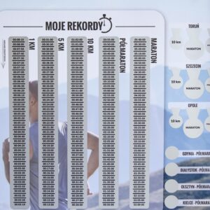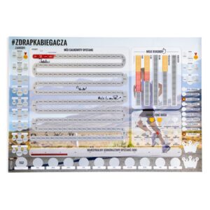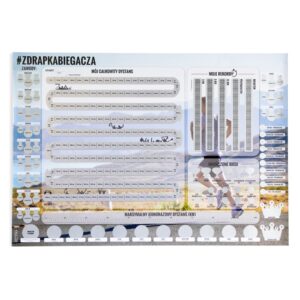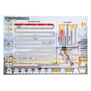 – plakat pokryty specjalną warstwą do zdrapywania- wymiary: 86,4 x 60,6 cm (prawie tyle, co 42-calowy telewizor)- elegancki przed zdrapaniem, kolorowy i efektowny po zdrapaniu- sekcje na plakacie: Mój całkowity dystans, Moje rekordy, Zawody, Maksymalny jednorazowy dystans, Ukończone biegi, Inne zawody- zawody w Polsce: Warszawa, Wrocław, Poznań, Gdańsk, Śląsk, Kraków, Rzeszów, Łódź, Lublin, Dębno, Toruń, Szczecin, Opole, Gdynia, Białystok, Olsztyn, Kielce, Bydgoszcz, Zielona Góra, Wałbrzych, Gniezno, Sobótka, Piła- zawody zagraniczne: Praga, Berlin, Londyn, Rzym, Ateny, Paryż, Nowy Jork, Boston, Chiny, Sydney- motywuje do biegania i poprawy swoich wyników