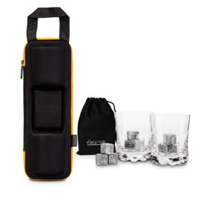 Ponieważ dobrymi chwilami warto się dzielić, zestaw tworzą dwie szklanki – abyś zawsze mógł rozkoszować się whisky w dobrym towarzystwie. W zestawie znajdziesz też kamienne kostki wykonane ze steatytu, które schłodzą whisky, jednocześnie nie zmieniając jej smaku. Dla wygody kostki wkładamy do zamrażalnika opakowane w dołączony do zestawu woreczek.