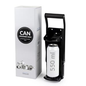 Dzięki Zgniataczowi Puszek MAX bez problemu zgnieciesz typowe puszki po piwie i napojach:568 ml550 ml – inne zgniatarki radzą sobie tylko z puszkami o max. pojemności 500 ml!500 ml330 ml300 ml200 mlPrzed użyciem należy zamontować go na ścianie lub na drewnianej powierzchni. Wkręty i kołki znajdziesz w zestawie.Postaw puszkę, pociągnij za dźwignię i gotowe.